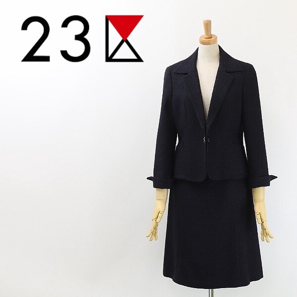 - ◆23区 ラメ混 ツイード 2Wayボタン ジャケット&スカート スーツ セットアップ 紺 ネイビー 38