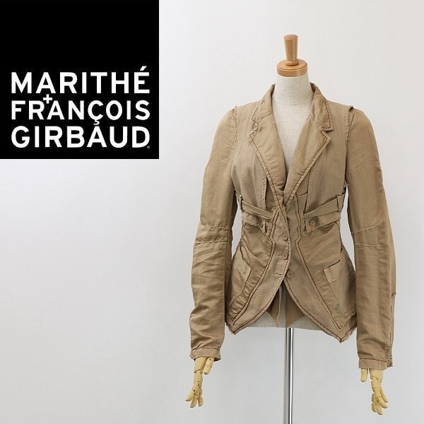 > ◆MARITHE + FRANCOIS GIRBAUD マリテ フランソワ ジルボー リネン&コットン デザイン ジャケット ブラウンベージュ M