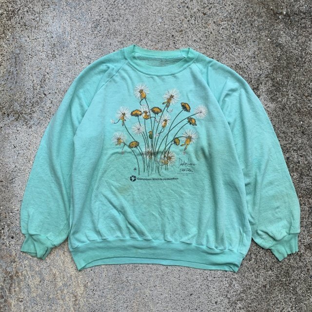 - 【XL】80s UNKNOWN タンポポ×ネズミ? スウェット ミントグリーン■ビンテージ オールド レトロ アメリカ古着 トレーナー ダンデライオン
