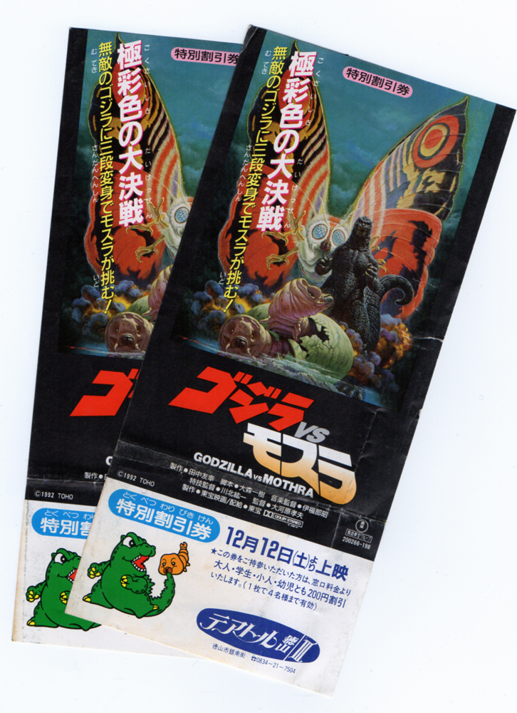 - ゴジラVSモスラ 映画特別割引券 2枚セット 東宝 1992 極彩色の大決戦 【周南地区店舗にて手渡し可】