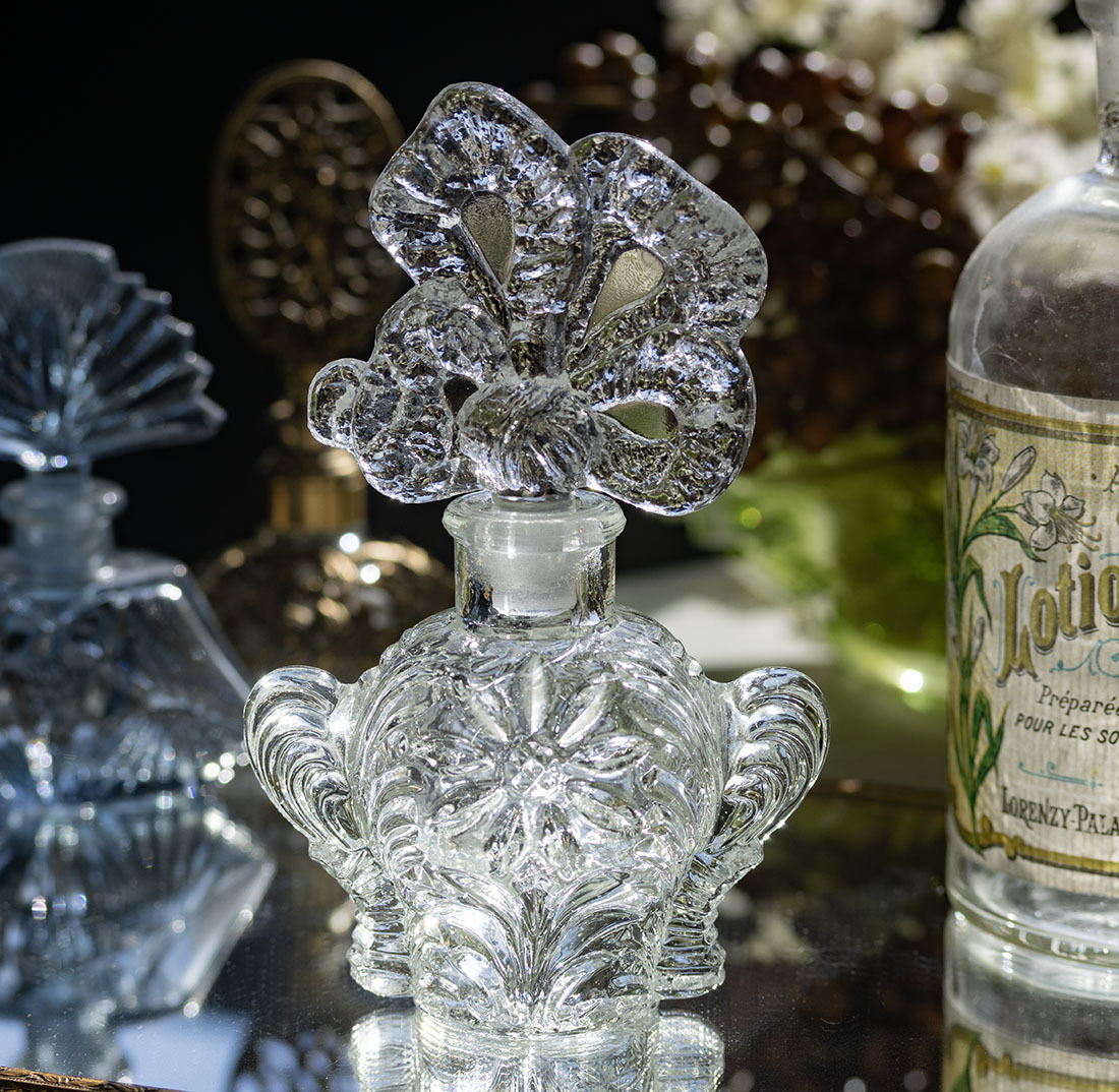 > クリスタル アイリス & リボン 香水ボトル 花瓶 ベース 一輪挿し ビンテージ インテリア ディスプレイ アメリカ 香水