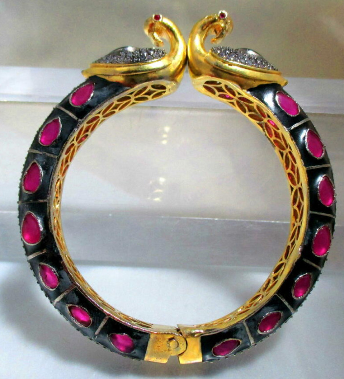 - 豪華18KGold 加工天然Ruby石バングルブレスレット