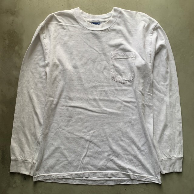 - 【L】USA製 長袖ポケットTシャツ ロンT ホワイト 白無地■ビンテージ オールド アメリカ古着 コットン ビッグサイズ ポケT