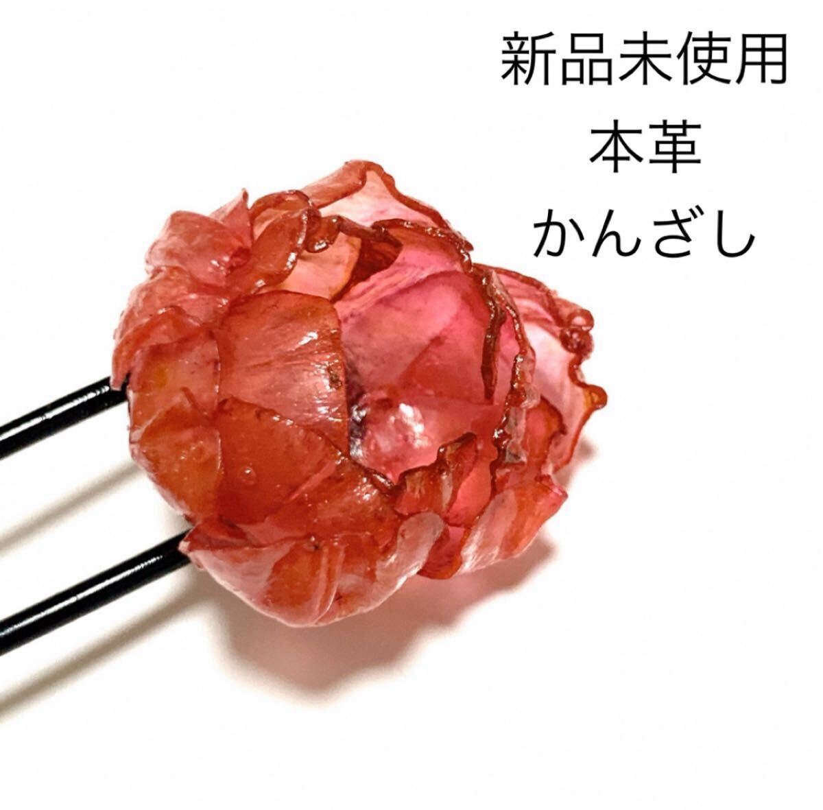 - 新品未使用 本革シースルーレザーかんざし レザークラフト 花髪飾り ヘアアクセサリー ピンク 振袖 成人式 浴衣 卒業式 薔薇 牡丹