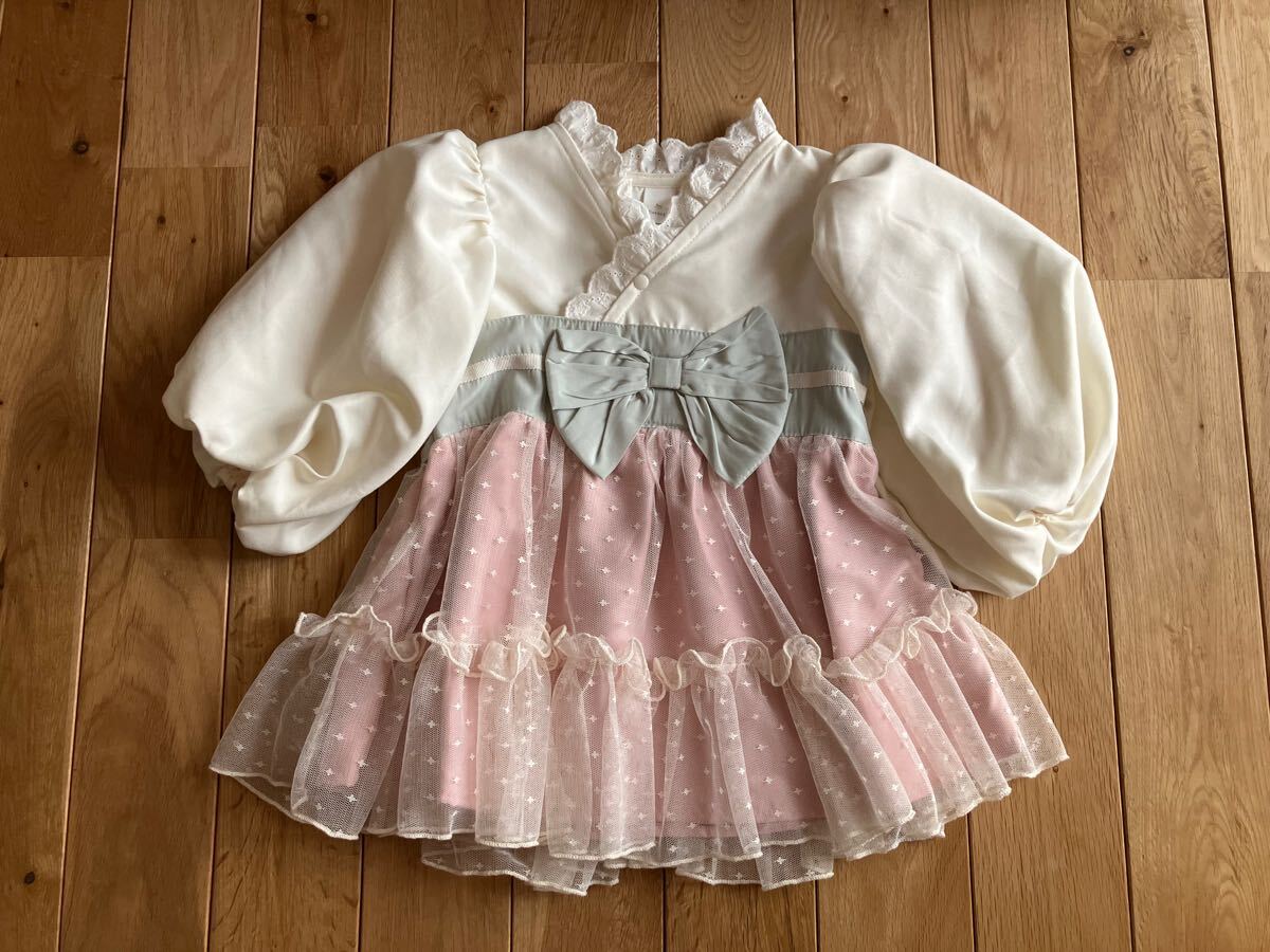 - 新品 コトリ 着物風 織姫 チュニック チュール 110センチ 90 95 クリーム色 グリーン ピンク