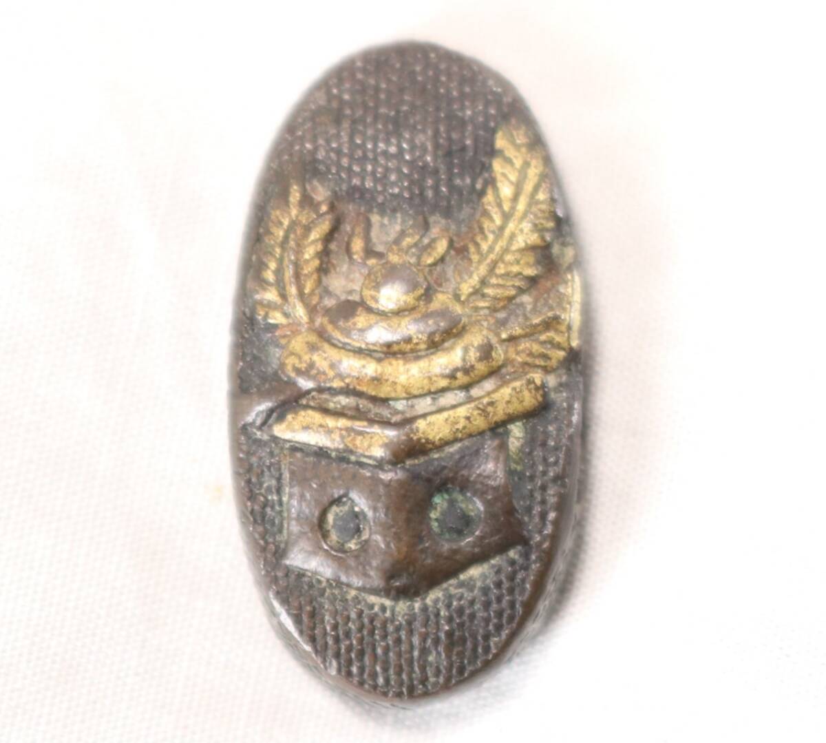- 三方に鏡餅、橙~超小粒 短刀 銅製 縁金具 (神社 神事の飾り刀用?) 縁頭 刀装具
