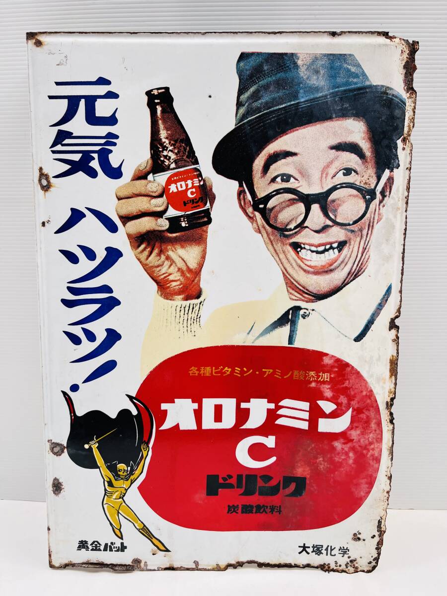 - 当時物 昭和レトロ 看板 ホーロー看板 オロナミンC 黄金バット 大村崑 60x40x5cm 大塚化学 琺瑯 ヴィンテージ