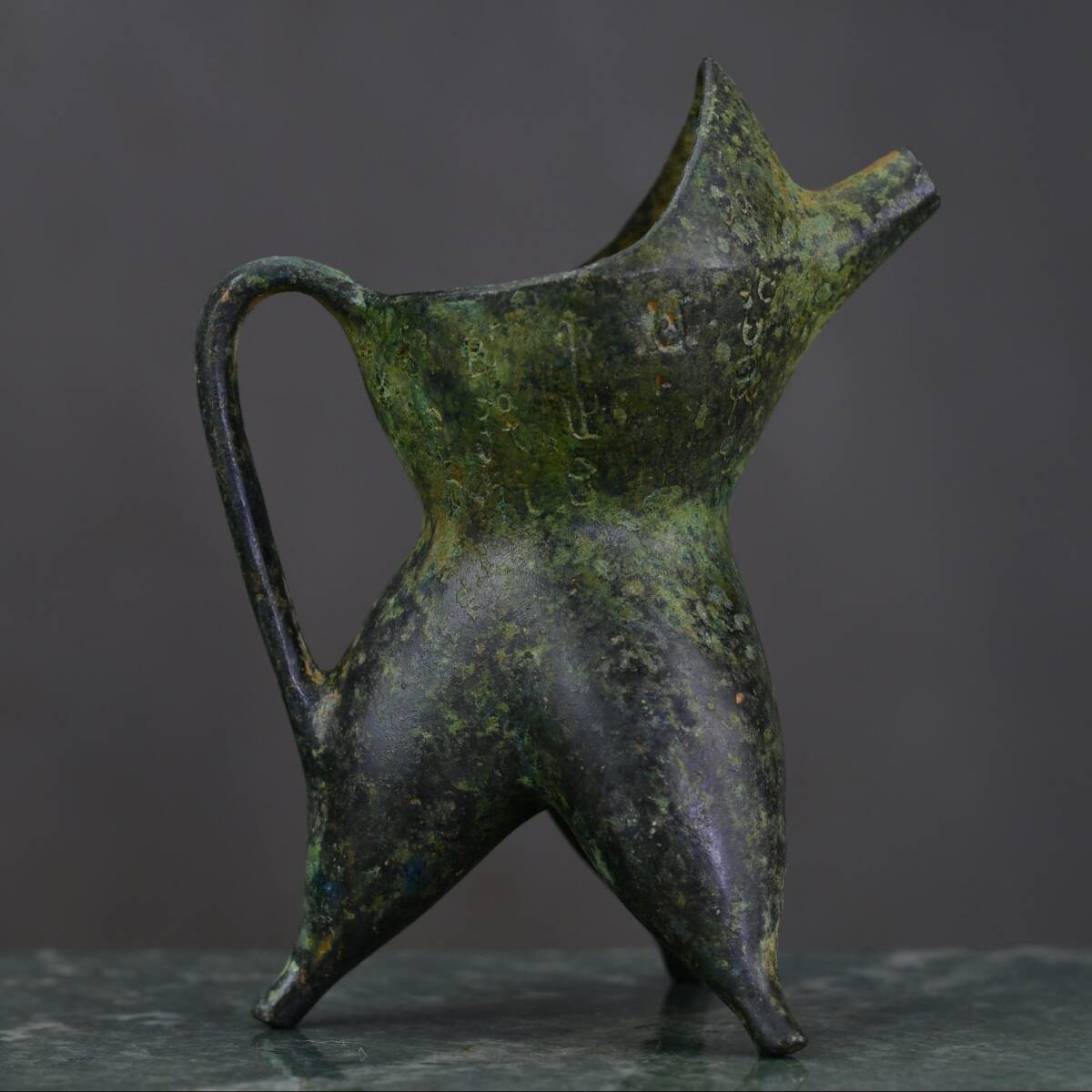 - 『館蔵珍品 漢 青銅製 爵杯』置物 賞物 貴重物品 収蔵品 中国古美術