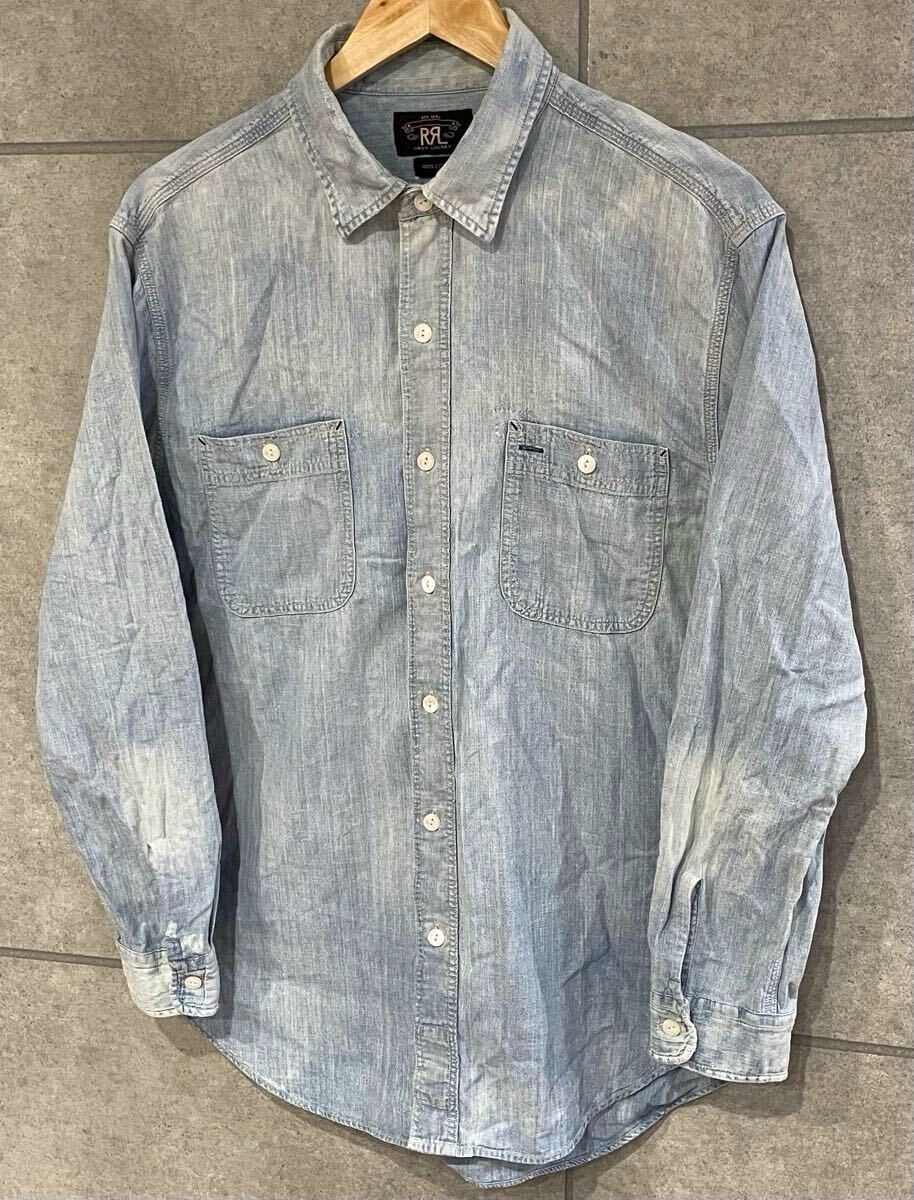 - 大人気! RRL RALPH LAUREN ラルフローレン 長袖 デニムシャツ コットン ブルー系 加工 Mサイズ メンズ レターパック可 ◯ 新規×