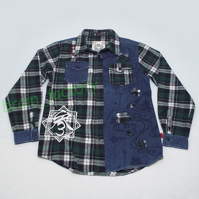 > 参丸一(SANMARUICHI)/福蛙 長袖 切替ネルシャツ/チェック&デニム 切替シャツ SSH-11108/サイズM /管KCJQ