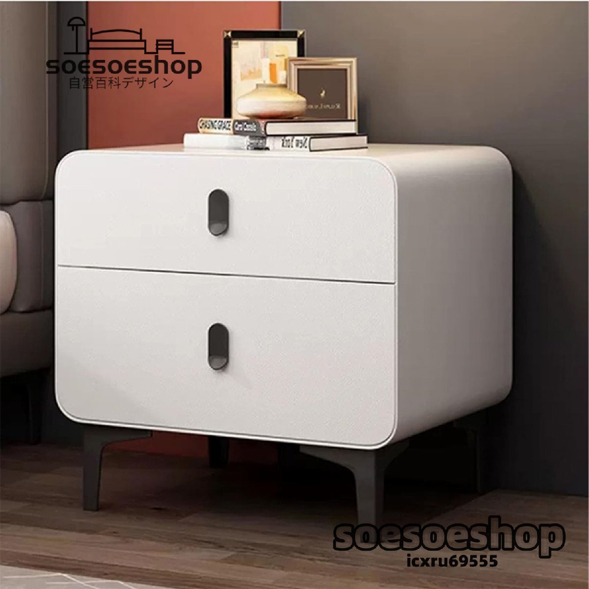 - 無垢材のサイドテーブル ローテーブル組立簡単頑丈 メンテナンス簡単モダン スタイル 2引き出し付きサイドテーブル ホワイト 50cm