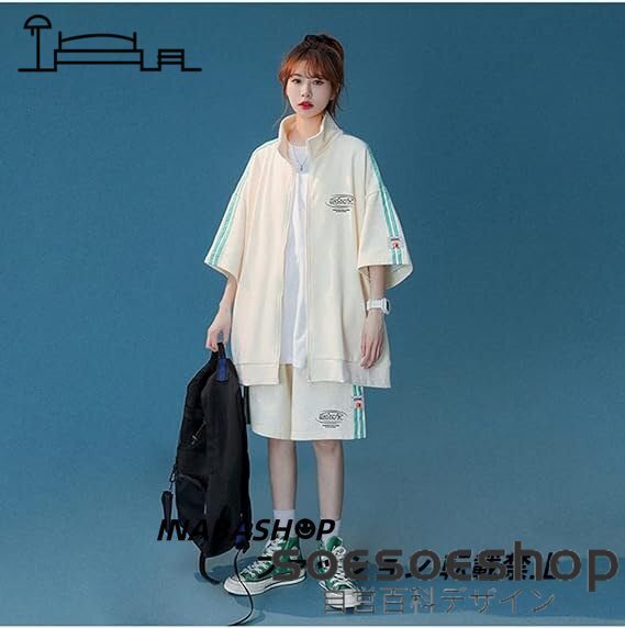 - 春夏 半袖ジャージ レディーズ 上下セットアップ 五分袖 パーカー ショートパンツ 2点セット スポーツウェア ゆったり カジュアル 韓国風