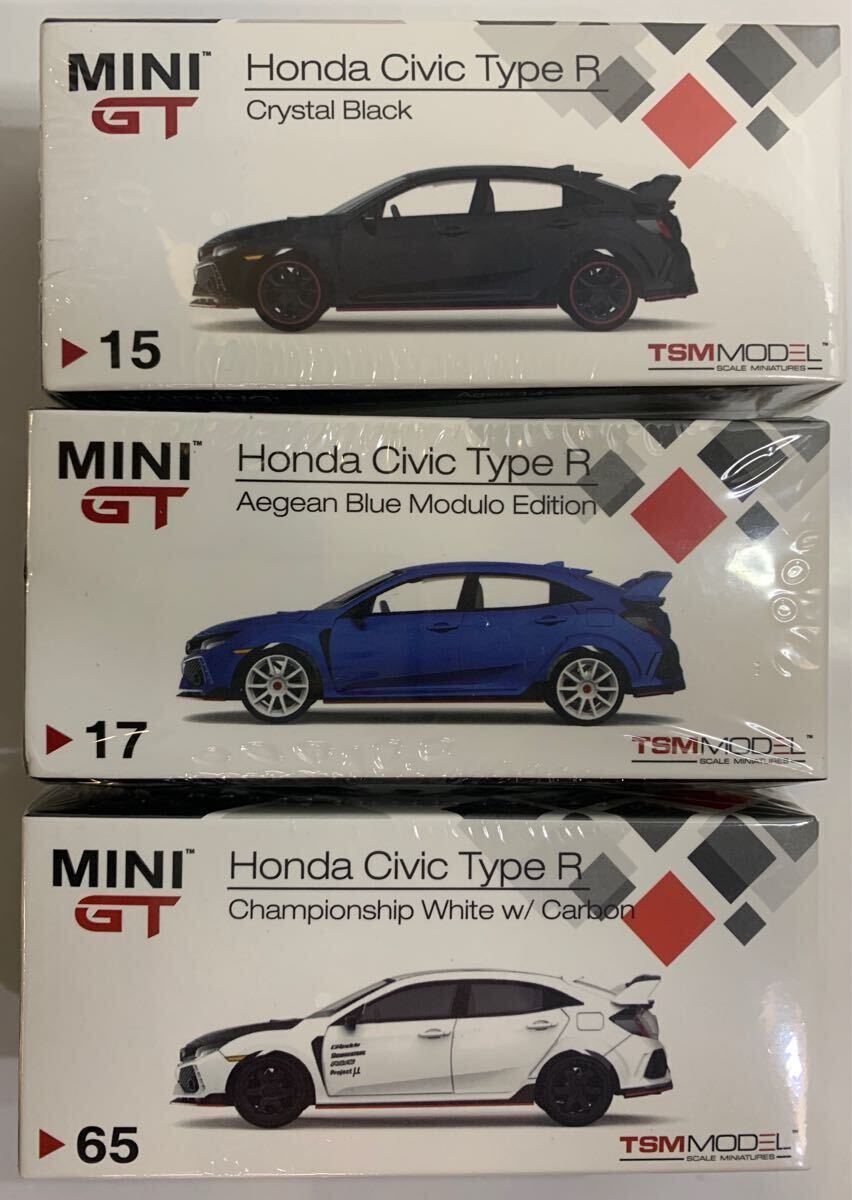 > MINI GT 1/64 HONDA CIVIC Type R★15 C rystal Black-L ★17 Aegean Blue Modulo Edition-L ★ Championship White w/Carbon-R 計3点
