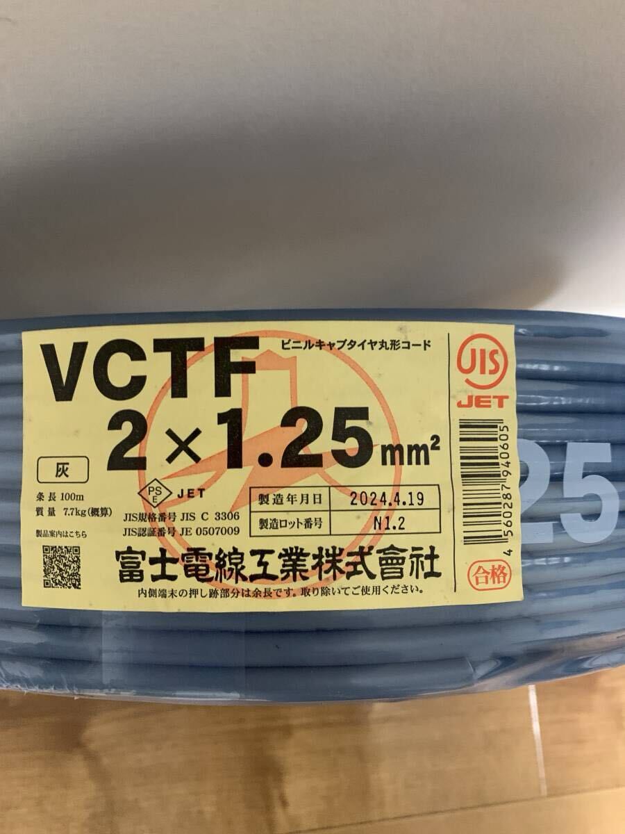 - ☆即決☆VCTF 2×1.25 富士電線工業 灰 100m 3検索VVF 4
