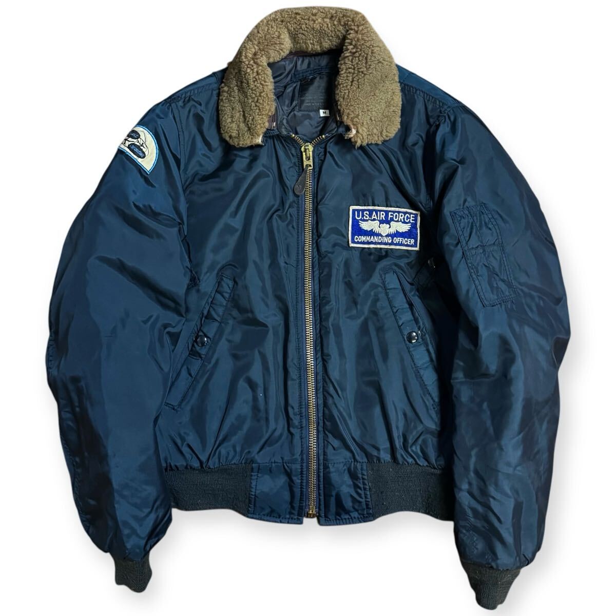 - 稀少 SPIEWAK ヴィンテージ 米国製 TYPE B-15 襟ムートン 中綿 フライトジャケット 短丈 ネイビー Mサイズ ワッペンカスタム