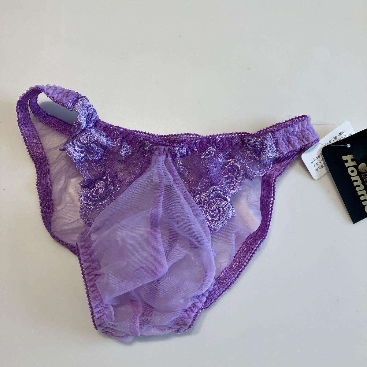 - ラポームオム メンズ La-pomme homme セクシー ラグジュアリー シースルー&ローズレースくいこみハーフバック パープル M