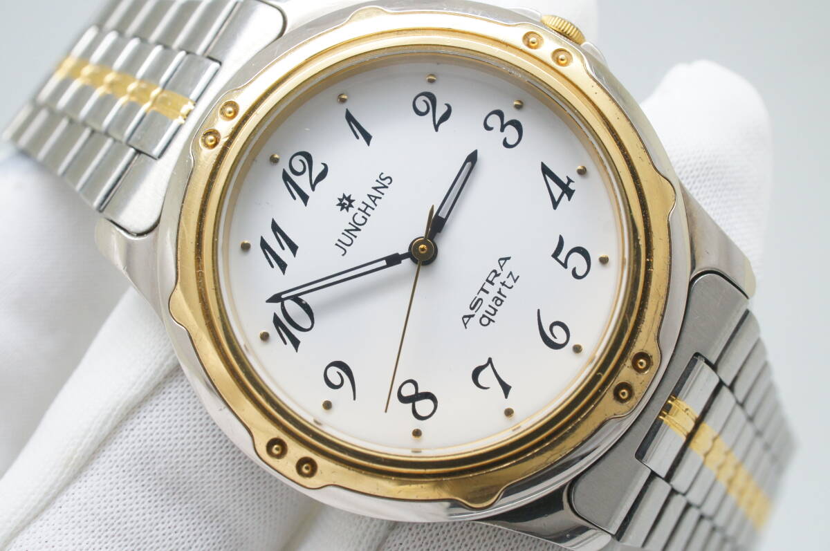 > C40●作動良好 JUNGHANS ASTRA ユンハンス アストラ 白文字盤 全アラビア数字 メンズ腕時計 コンビ お洒落 クォーツ