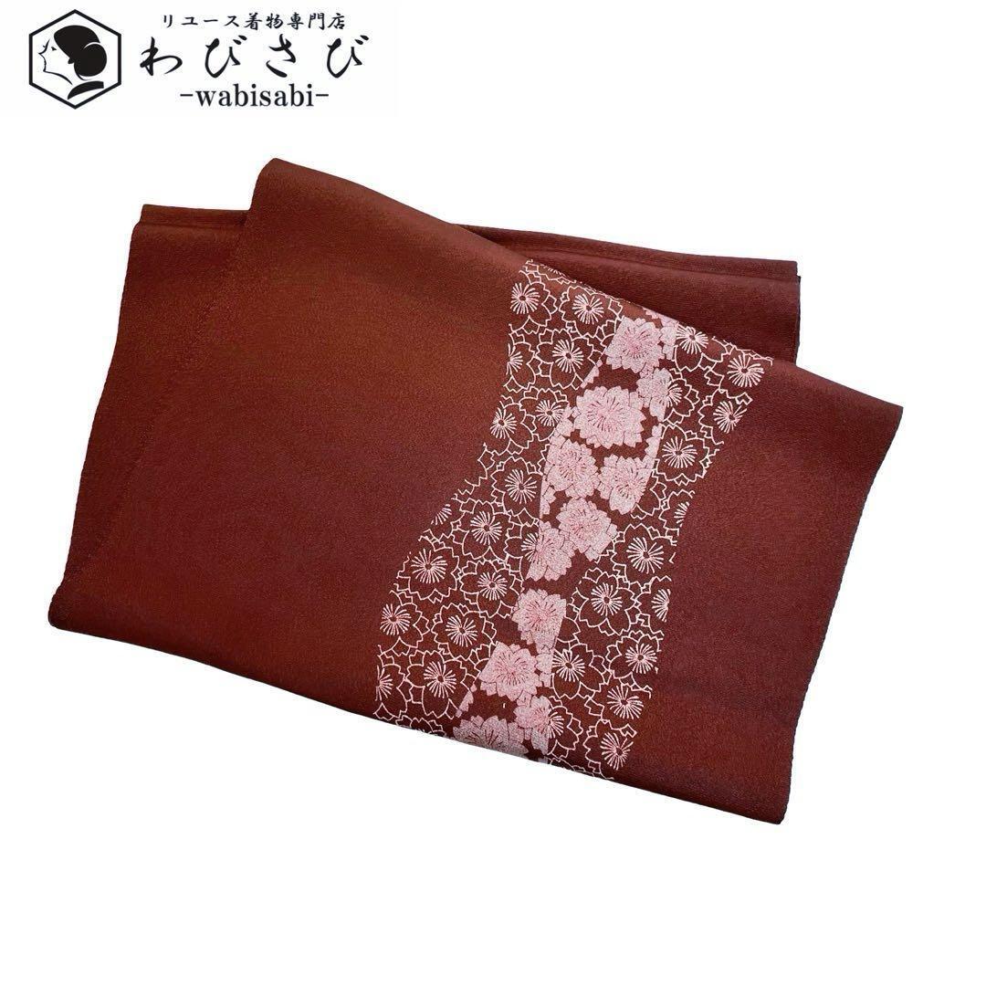 弁柄色のお色味に桜の花模様がデザインされた品のある素敵な柄裄のお品でございます。