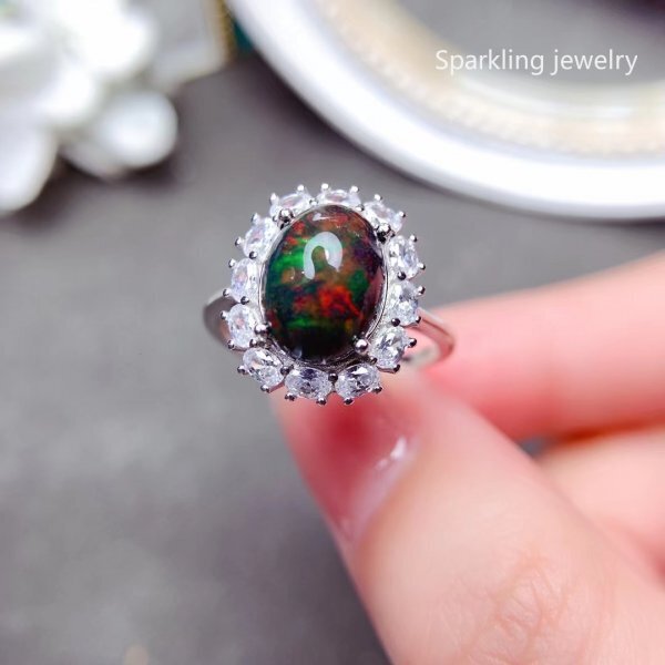 天然ブラックオパールリング,8×10mm,925シルバー,色あせない,18K金メッキ