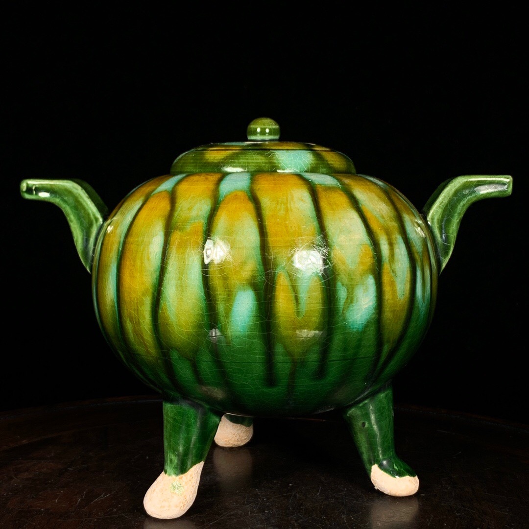 - ▽鴻▽ 唐 三彩 雙耳 三足熏香炉 古陶瓷品 置物 古賞物 中国古玩 中国古美術