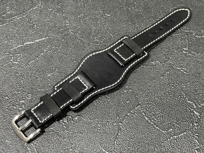 - ラグ幅:24mm 腕時計ベルト マット ブンド付き レザーベルト 本革 カラー:ブラック 革ベルト 時計用バンド BDR