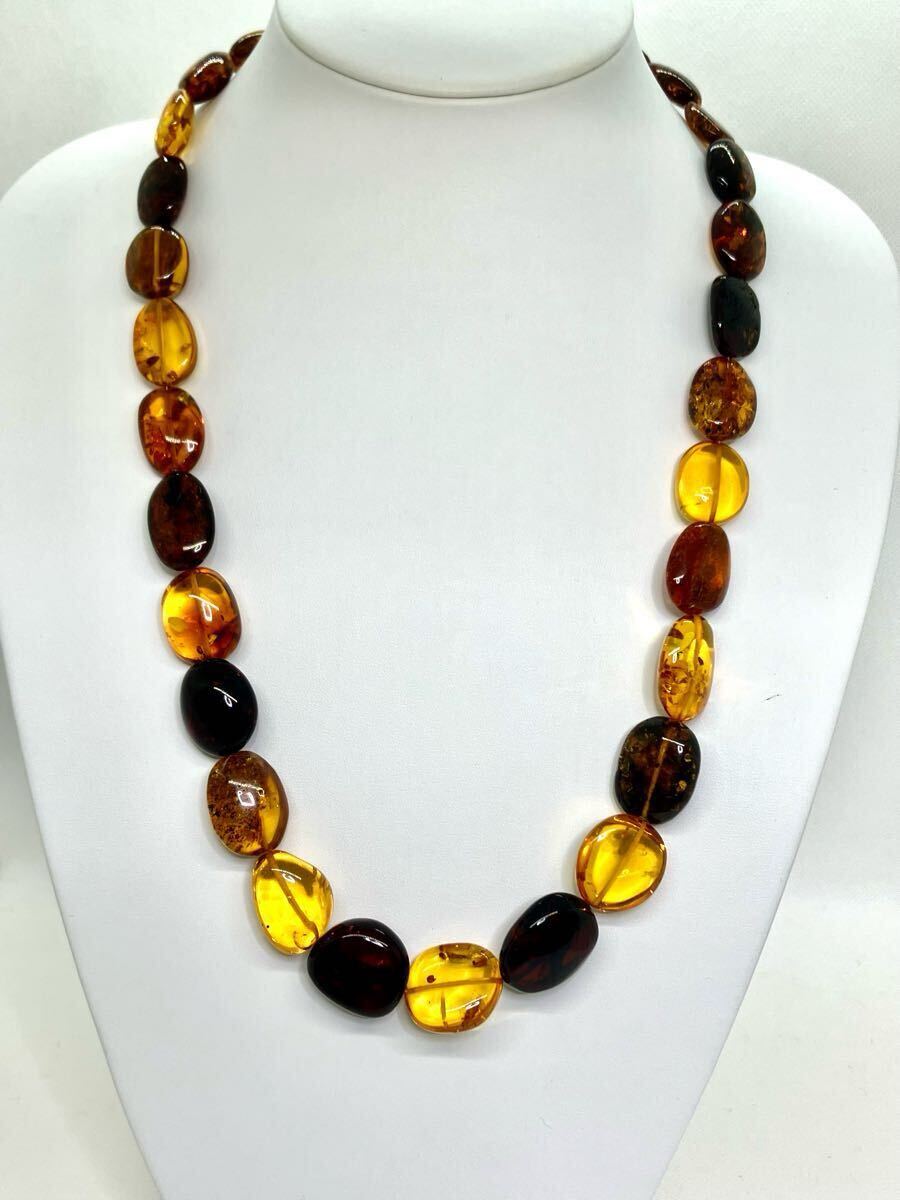 - 【新品】リトアニア産琥珀ロングネックレス*ミックスアンバー*アンバー*こはく*コハク*貴重*グラデーション*黄褐色*天然石*大ぶり