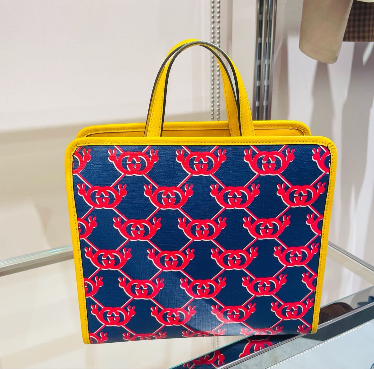 > 送料無料 《新品》正規品 未使用 本物GUCCI/グッチ スネイル チルドレンズ 袋/SAランク トートバッグ ネイビー/イエロー/レッド定価120,000