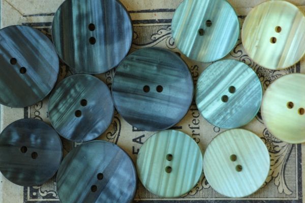 - 即決 プラスチックボタン 12個 φ18 & 22mm ストライプ 縞模様 イエロー グリーン グレー フランス輸入 ヴィンテージ