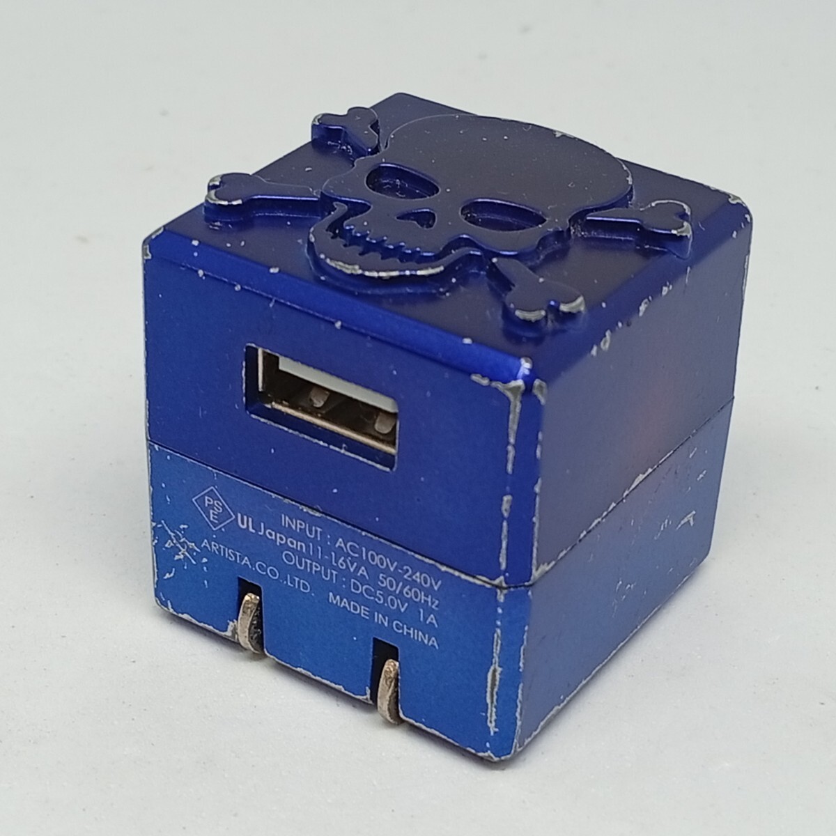 - USB 充電器 AC100V-240V DC5V 1A ドクロ 骸骨 中古品 ジャンク品