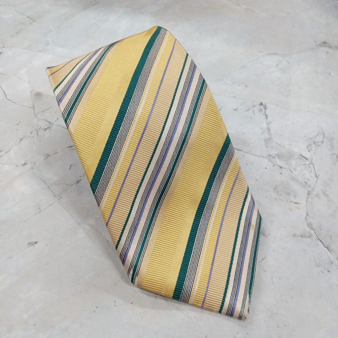 - ポールスミス ネクタイ 黄色×緑×紫 ストライプ シルク コットン【n549】