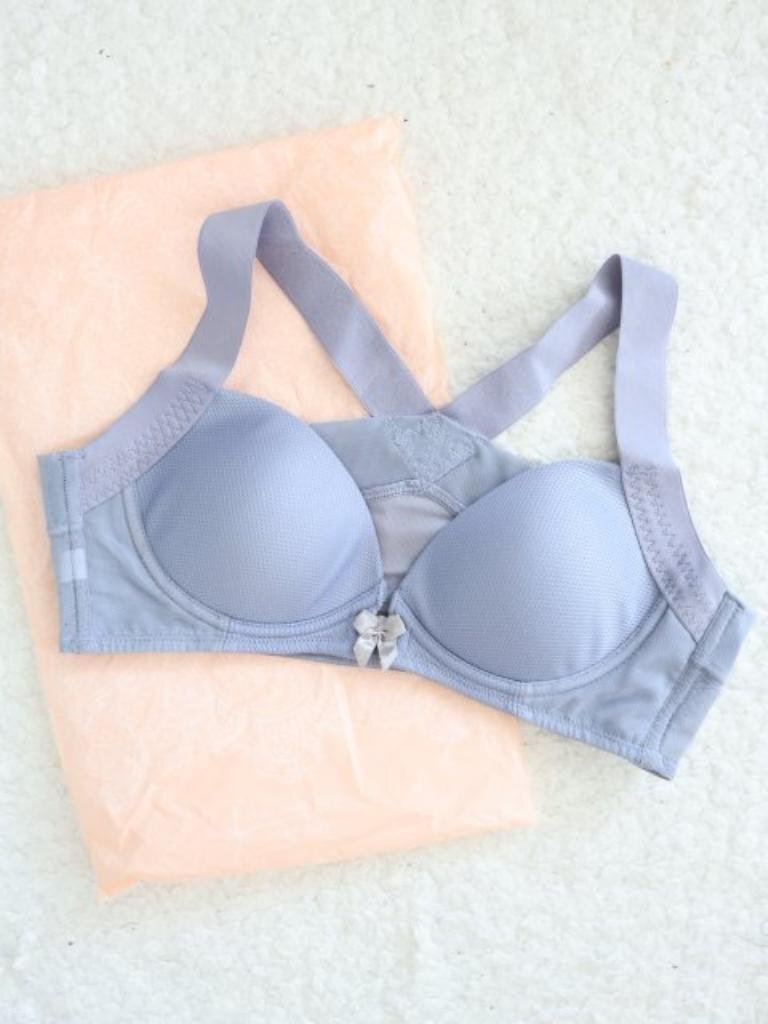 - 新品未使用品【送料込】FELISSIMO フェリシモ ブラジャー A80 くすみブルー×グレー インナーウェア シンプル 綺麗め 6450258
