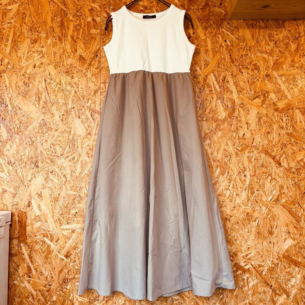 - w closet ワンピース ドッキングワンピース 生地切替 ロングワンピース 袖なしワンピース 4021