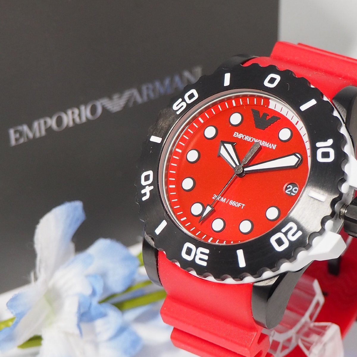 ★★★★ 新同品 アルマーニ ARMANI ダイバーズ ラバーベルト メンズ腕時計 箱 F541★★★★
