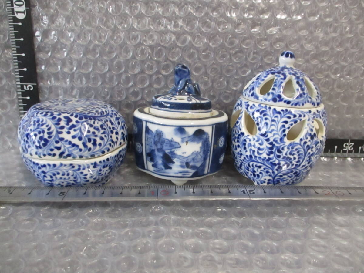 - 香は焚いてません綺麗3個★九谷焼 九谷 獅子摘み 染付 香炉/三つ足香炉/香合★60