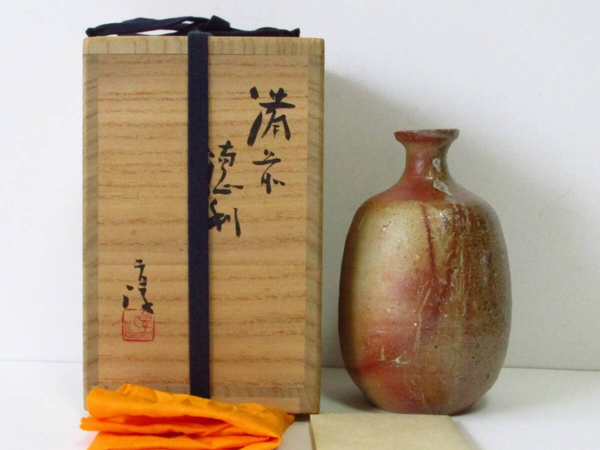 - ○清雅○ 人間国宝・伊勢崎淳 備前焼 徳利 四方桟共箱 人間国宝認定後の作品