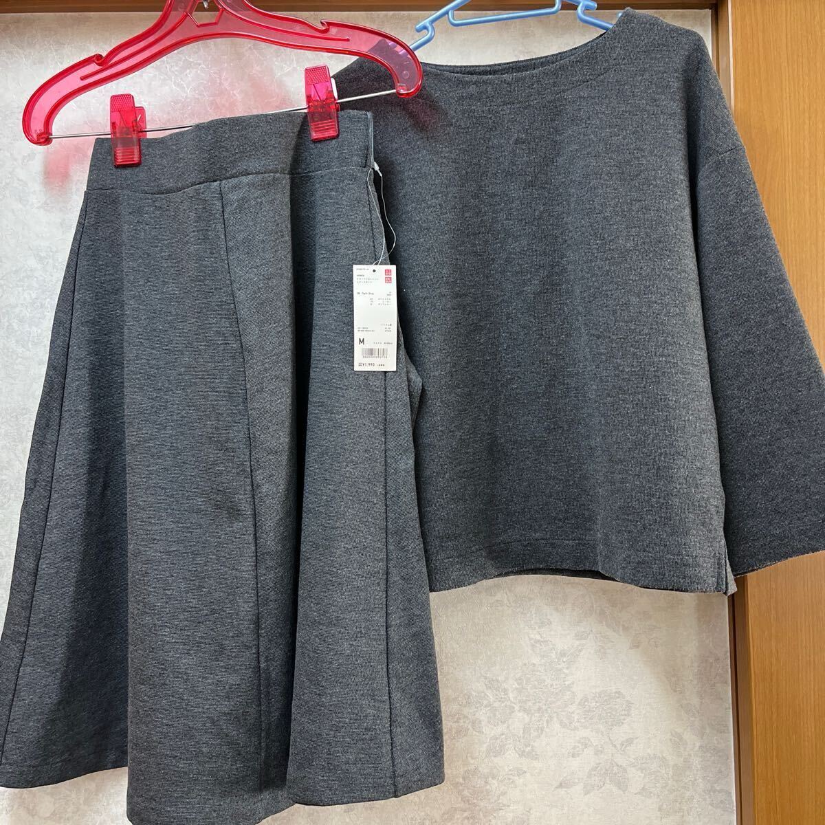 > ★UNIQLO★ユニクロ M ミラノリブカットソー&ミディスカート セットアップ スカートのみ新品タグ付き グレー 長袖 フレアスカートゴム