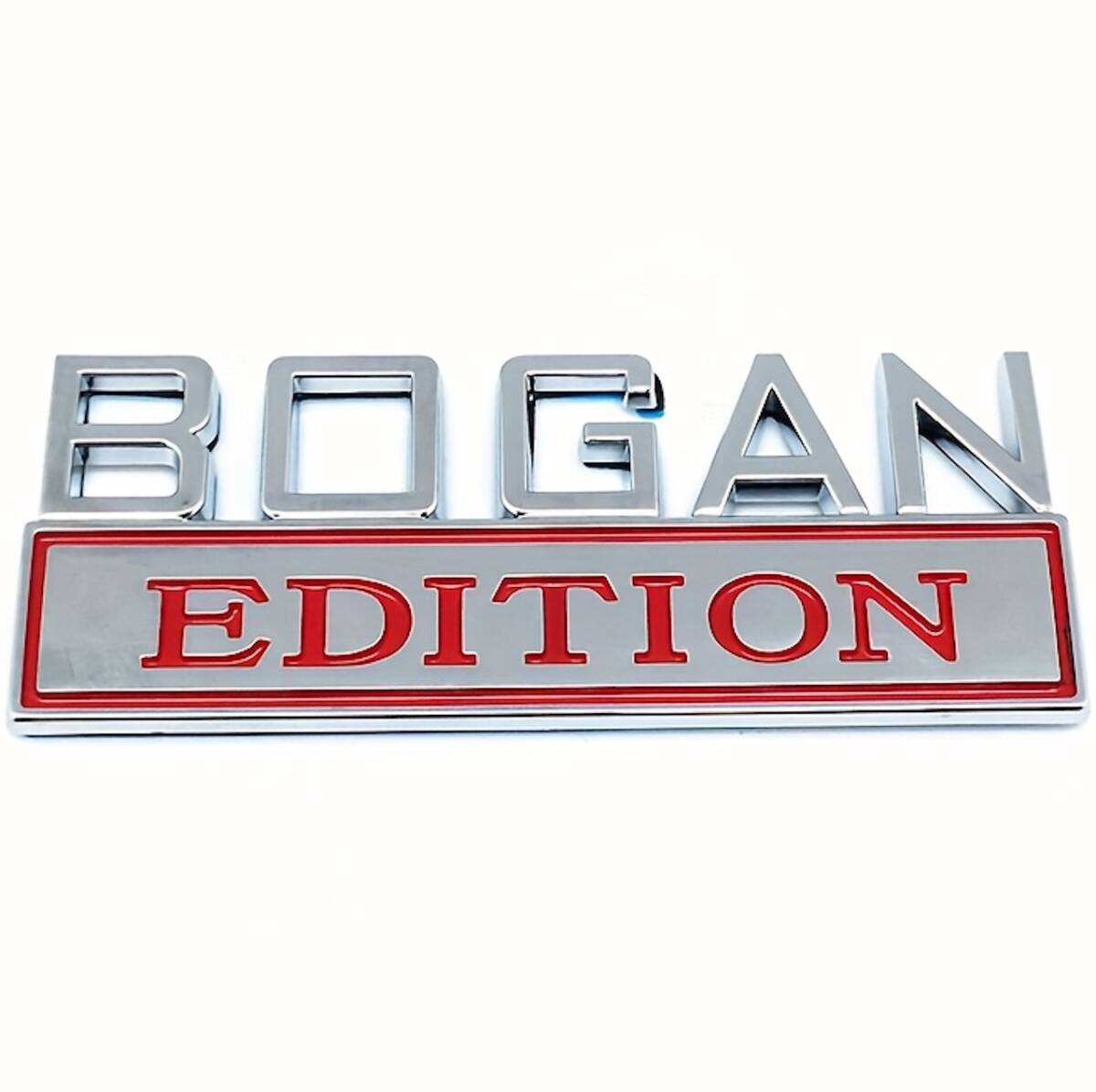 - エンブレム エディション ボーガン BOGAN おしゃれ 金属 シルバー レッド 銀赤 メタルステッカー 立体 8cm 車用 ロゴ 外装 シール t5232