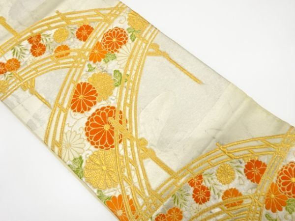 > ys7320663; 宗sou 橋に八重桜・菊・唐草模様織り出し袋帯(材料)【アンティーク】【着】