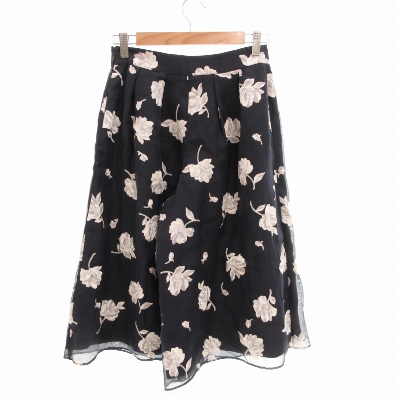> レッセパッセ LAISSE PASSE スカンツ ワイドパンツ 花柄 38 紺 ネイビー ■MG /TZ レディース