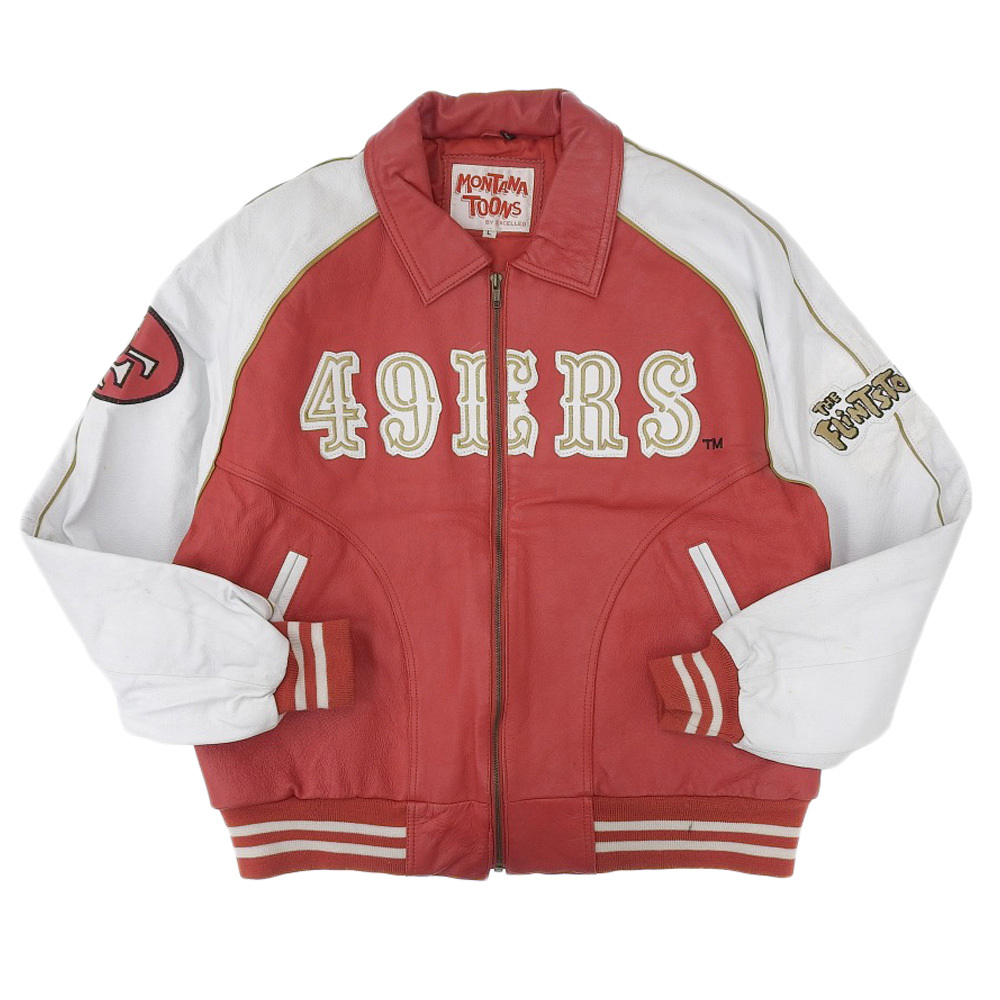 - MONTANA TOONS NFL サンフランシスコ 49ERS オールレザースタジャン アウター メンズ レッド ホワイト L 90's ヴィンテージ