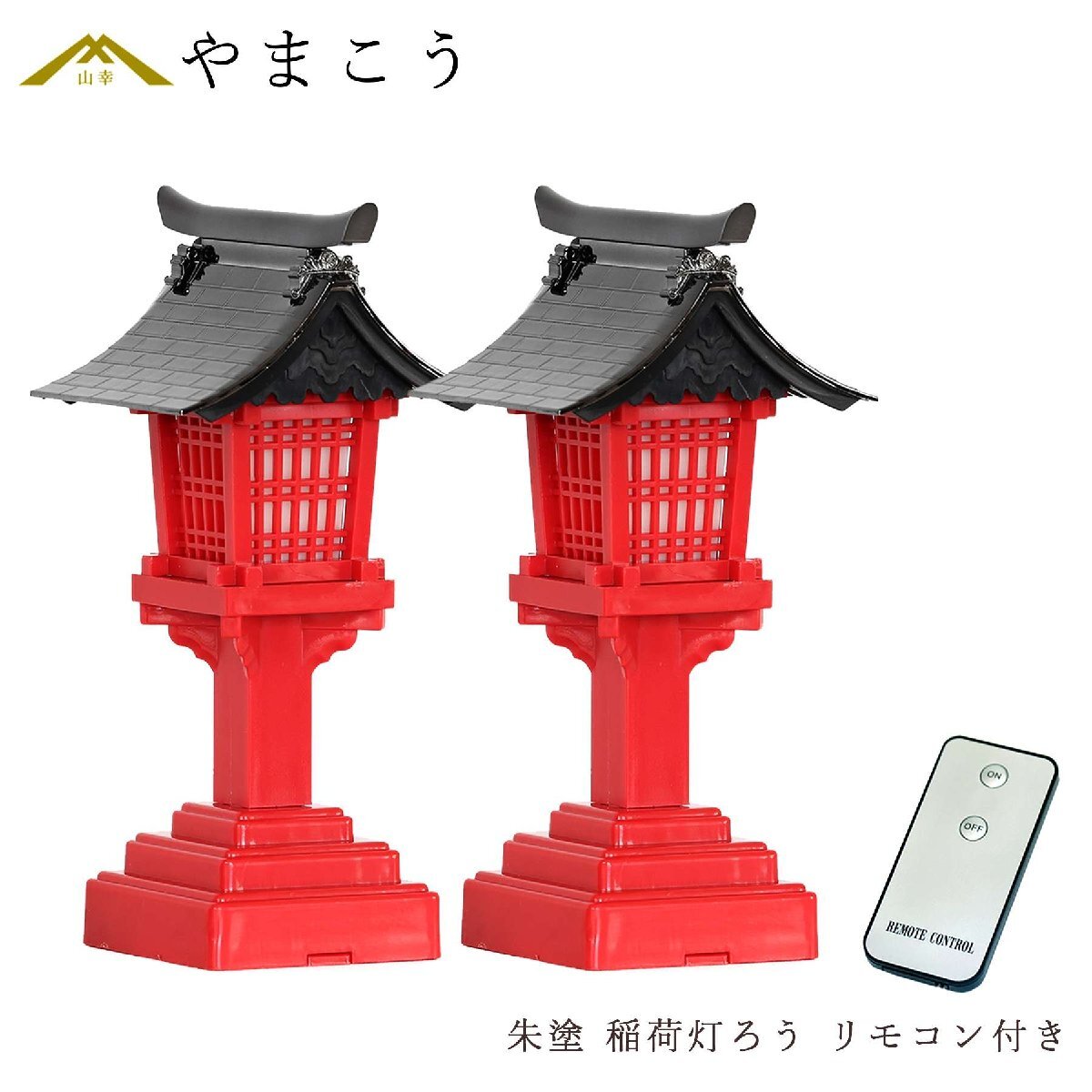 > リモコン付 LED 灯篭 ゆらぎ 一対 朱塗 黒屋根 高さ19cm 6号 神具 神棚 祖霊舎 稲荷 燈籠 燈篭 灯籠 灯ろう