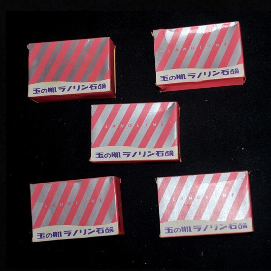 - ●2232●昭和 固形石鹸コレクション ◆ 「 玉の肌 ラノリン石鹸 」 5 個 ◆ 希少な置き古し品です。!
