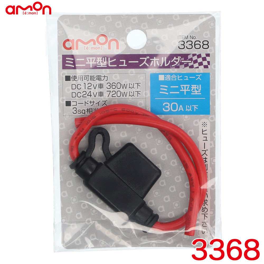 - ミニ平型ヒューズホルダー 平型ヒューズ用(15A以下) コードサイズ1.25sq相当×約9cm エーモン/amon 3368 ht