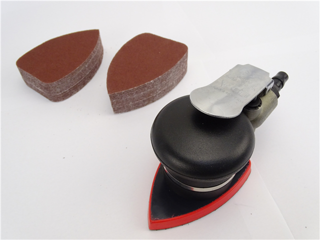 - 売り切り 未使用 三角形 70X900mmエアーオービタルサンダー 非吸塵式 空気圧 調整式 軽量710gハンディタイプ #120 サンドペーパー50枚付