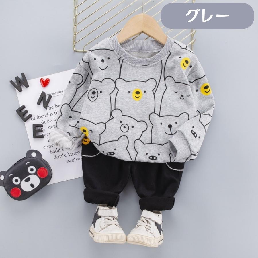 > グレー 110cm 2点 セットアップ スウェット 上下セット トレーナー パンツ 長袖 アニマル柄 くまさん キッズ服 薄手 ベビー服