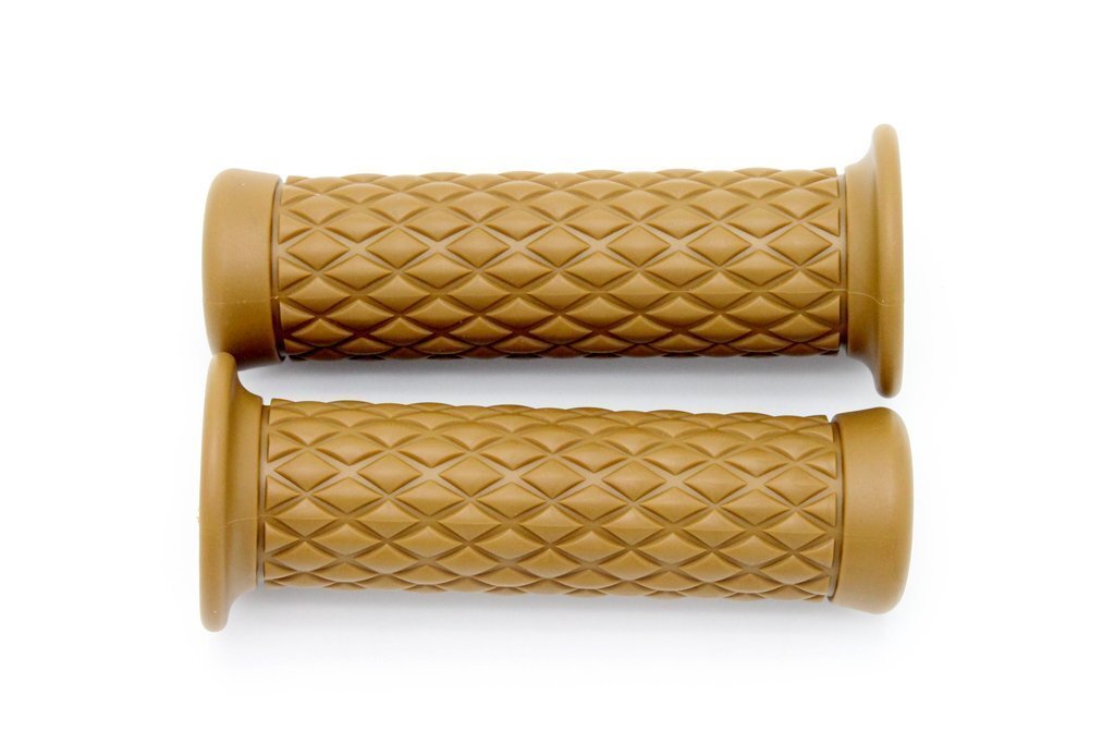 - 送料格安 非貫通 ラバーグリップ 左右セット ダイヤ柄 カーキ ブラウン ゴムグリップ カスタムグリップ エンド付き 汎用 22.2mmハンドル用