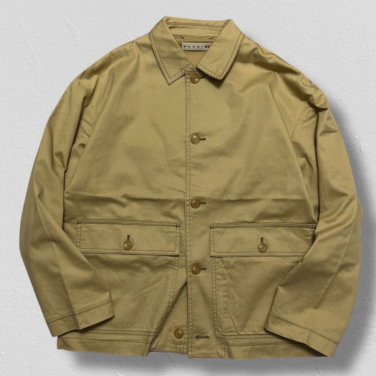 > UNIQLO × MARNI ユニクロ×マルニ コラボ コットンジャケット M ベージュ●洗濯プレス済● ジャケット カバーオール アウター 古着/244