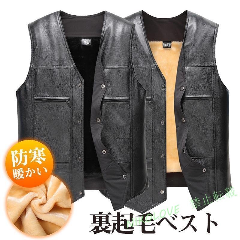 - レザーベスト メンズ 裏起毛ベスト 合皮 Vネック ビジネス オフィス 厚手 ノースリーブ 前開き アウトドア 防寒 暖かい 通勤MK205
