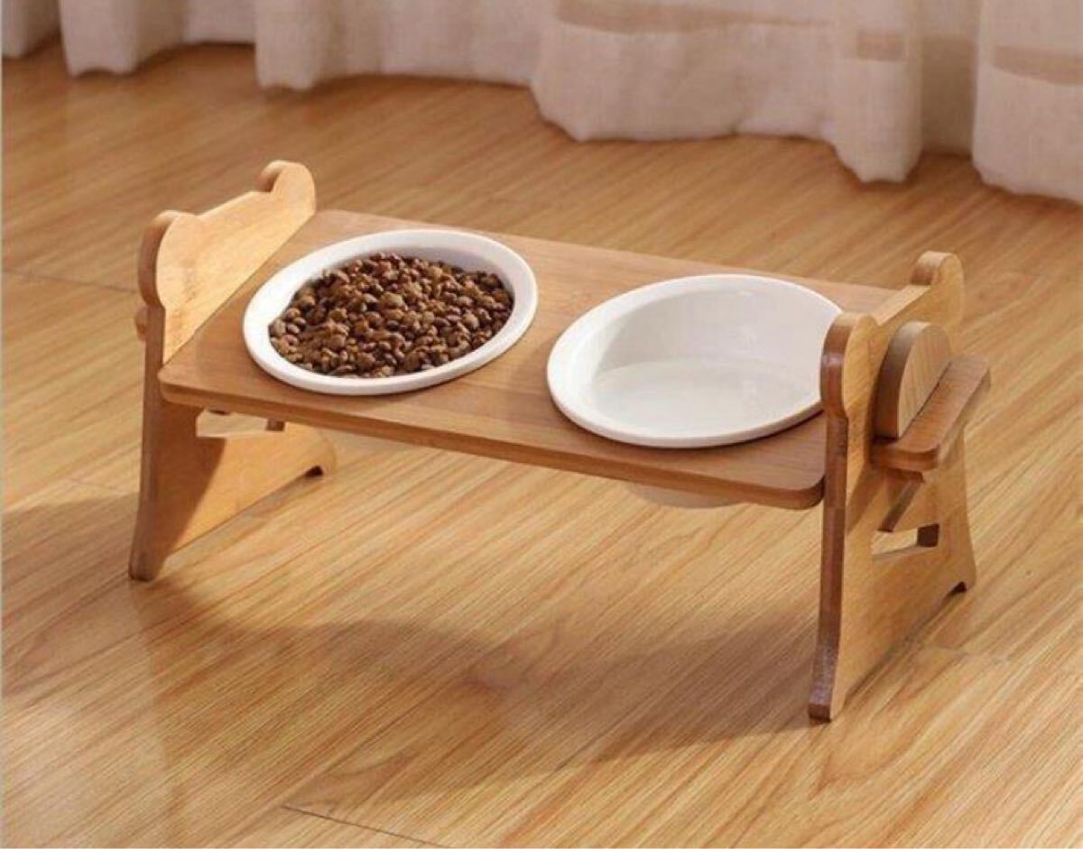 - 猫用食器犬(小型犬)フードボール個個ボウル餌皿エサ皿陶器茶碗木製棚スタンド食べやすい15°傾斜ペット用品フードスタンド可愛い