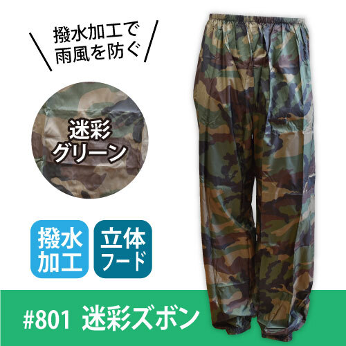- ヤマシュウ ヤッケ ズボン メンズ 【 #801 】 迷彩ズボン ■Mサイズ■ 迷彩グリーン色 撥水 ≪ネコポスの場合2着まで可≫
